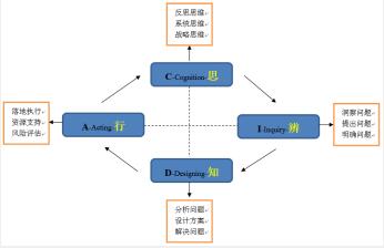 l 人大CIDA(思达)行动学习 在整体课程体系中,嵌入CIDA行动学习方法论。 基于学员实际决策场景或对标案例,展开问题萃取-问题分析-问题解决-问题验收的学习过程。 学习方法论涵盖听课、提问、反思、讨论、教练、设计方案等。 从认知(思)、质询(辩)、方案设计(知)和行动落地(行)几个层面,帮助学员做到认知升维和行动降维。